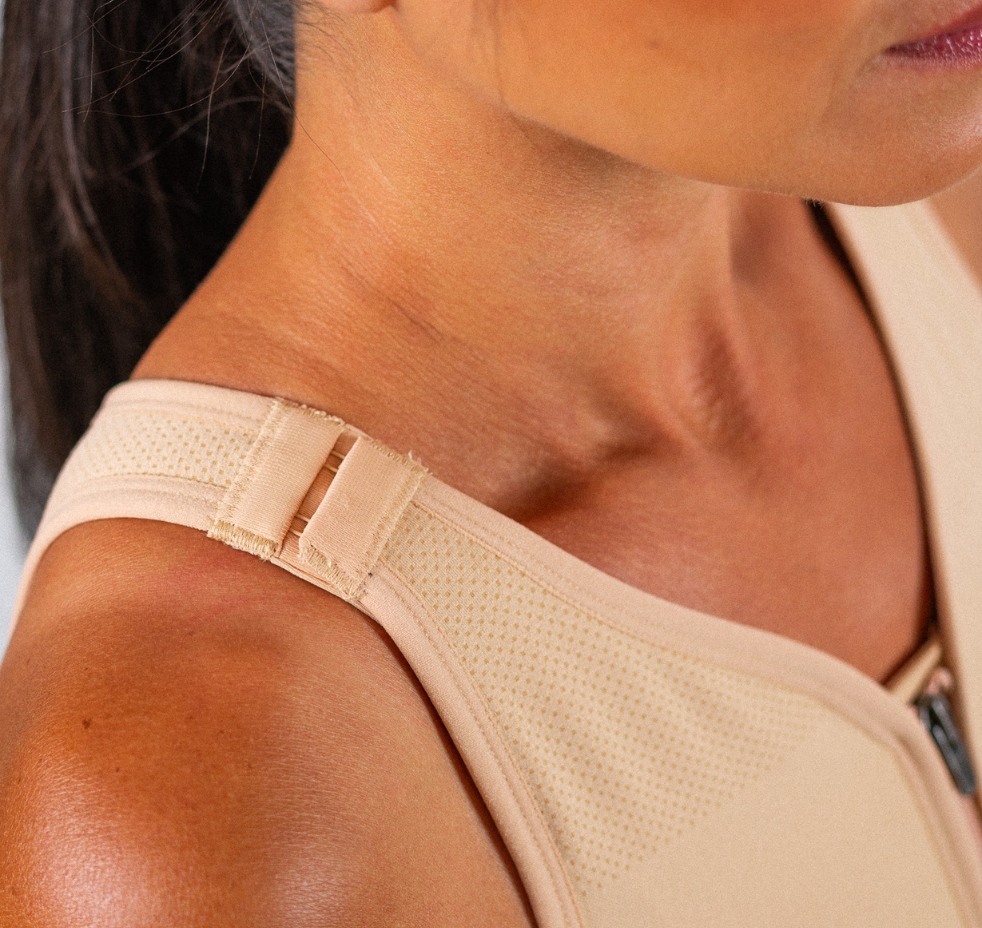 Bretelles larges ajustables avec des attaches assurant un confort optimal, soulagent les épaules et empêchent une obstruction de la circulation lymphatique